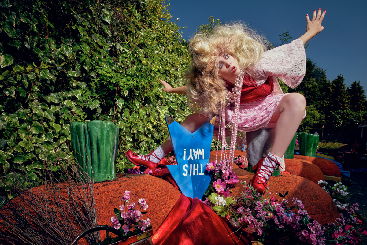 Sometimes we plan a shoot and we will plan it from A-Z (and during the shoot it will be different). But we will have an idea for the clothing, location etc. and sometimes… It just happens. Remember that shot we opened with, Nadine sitting on a pumpkin with the sign pointing down? Believe it or not, NOTHING in that shot was planned. It was shot during a workshop I taught in the UK last year and we happened to stumble on this cute little shop creating props for kids attractions. We asked if we could use it for a shot and they said, “Sure but what do you see in this junk?” We just said, “Trust us.” Nadine combined the clothing and literally built the set herself in mere minutes. The only thing I had to do was to “blend” everything together, pose and lighting wise. You don’t want to know how many people ask us how much preparation that shoot took and I think half of them don’t believe the story I just told you, but it’s 100% true.